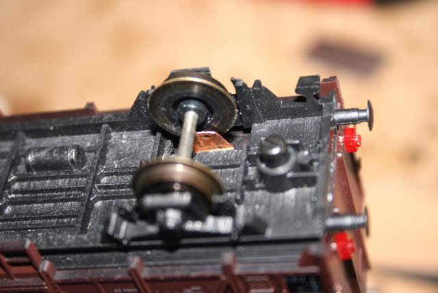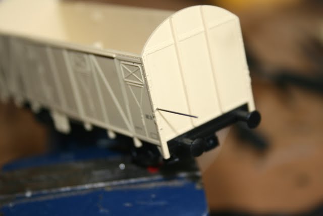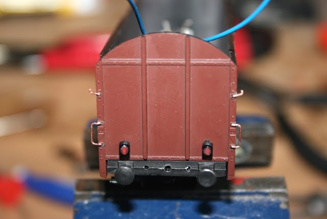 Нашёл пару обломаных Roco вагонов,и решил вернуть их к жизни.Для поручней использовал проволоку 0.6 мм,и такое же сверло.Крутил сверло пальцами.На последнем фото на вагон поставил накладные от Liliput.Думаю использовать его как последний вагон в составе. Планирую его состарить,вместе с белым,и на коричневый поставить сигнальные фонари.